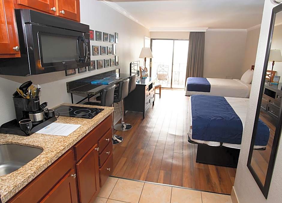 A kitchenette with a dishwasher and stove is included in this studio, along with cable TV in the living area.